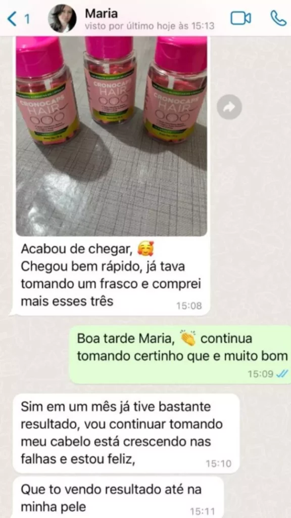 A melhor forma de saber se o Cronocaps Hair funciona mesmo é analisando quem já testou o tratamento. Segundo a página oficial, muitas usuárias relatam uma transformação visível já nas primeiras 2 a 3 semanas de uso.