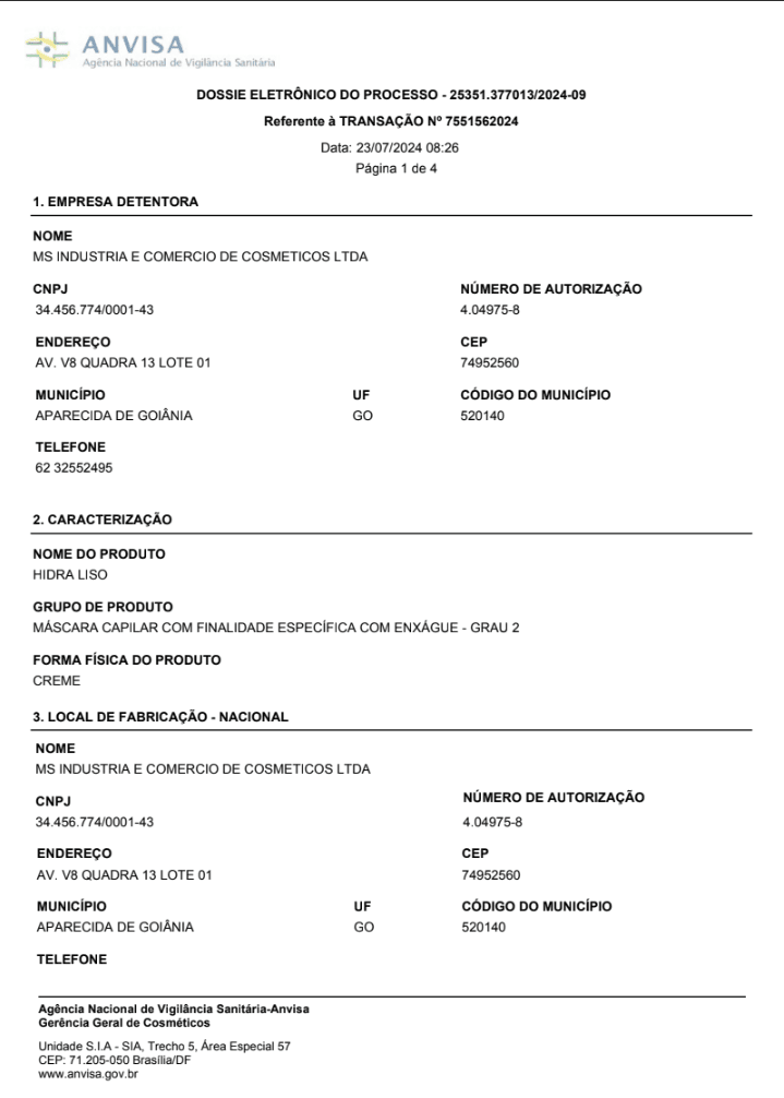 Sim, a Hidra Liso é segura e registrada na ANVISA, o que garante que sua fórmula não contém formol ou componentes proibidos. É um produto amplamente utilizado por influenciadoras e milhares de clientes reais.